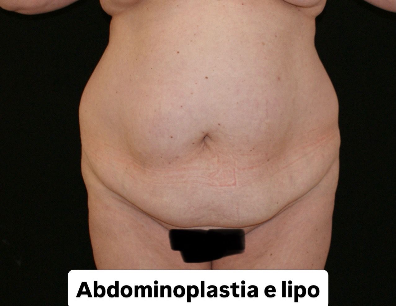 Nesse contexto, optamos por **abdominoplastia + lipoaspiração**, pois, dessa forma, conseguimos tratar simultaneamente a pele, a musculatura e a gordura.